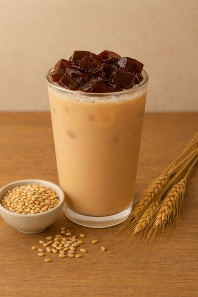 以香氣飽滿的烘焙蕎麥穀粒為基底,搭配新鮮鮮奶調和成一杯穀香明顯、奶香柔和的特色飲品。