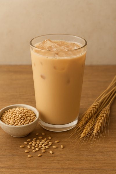 以香氣飽滿的烘焙蕎麥穀粒為基底,搭配新鮮鮮奶調和成一杯穀香明顯、奶香柔和的特色飲品。